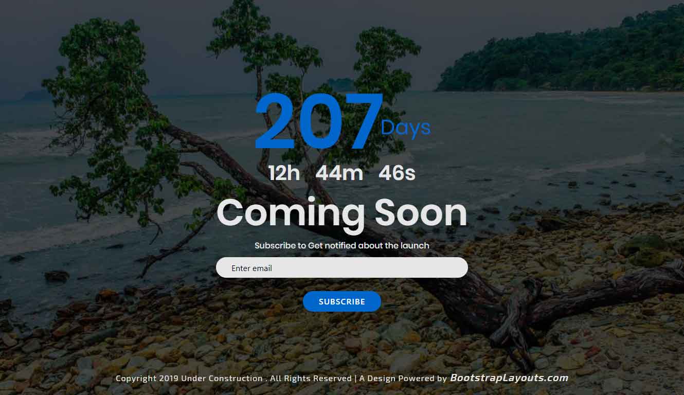 Riva is a ready to go completely responsive Coming Soon Landing Page. It has a beautiful background picture and content is beautifully arranged that gives focus on the main purpose Coming Soon. It is suitable for anyone who likes it and want to use it.