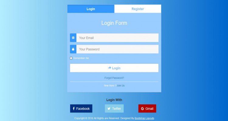 Clean and eye-catchy tab login and registration form for your website.